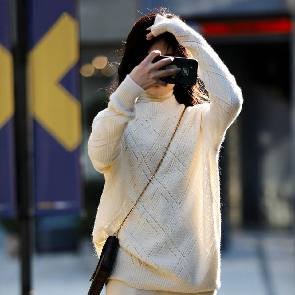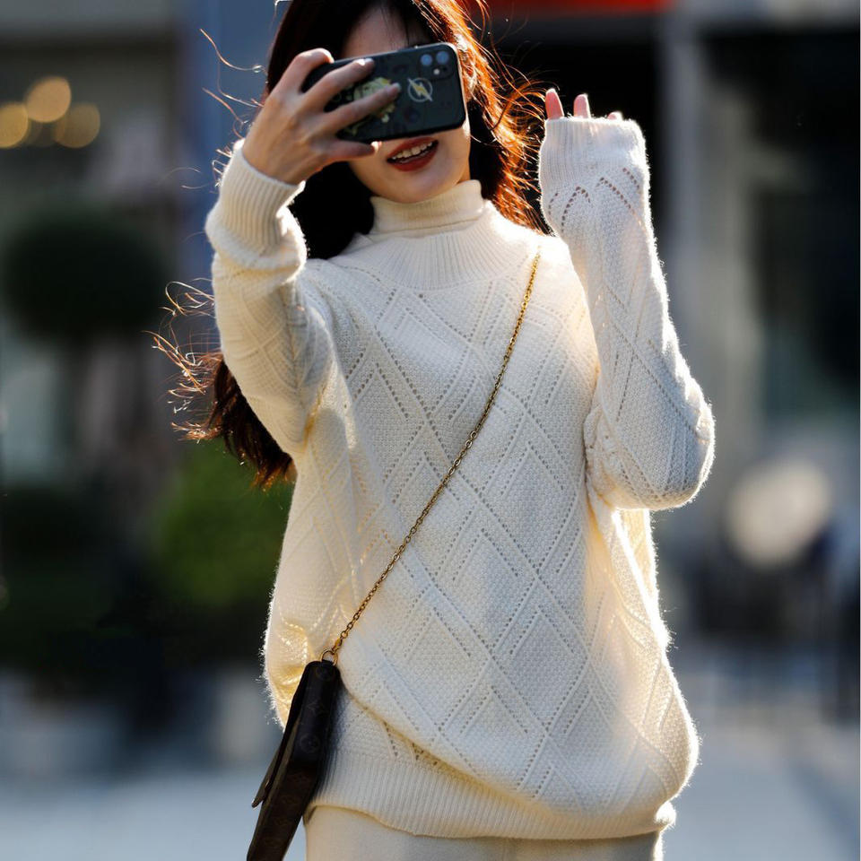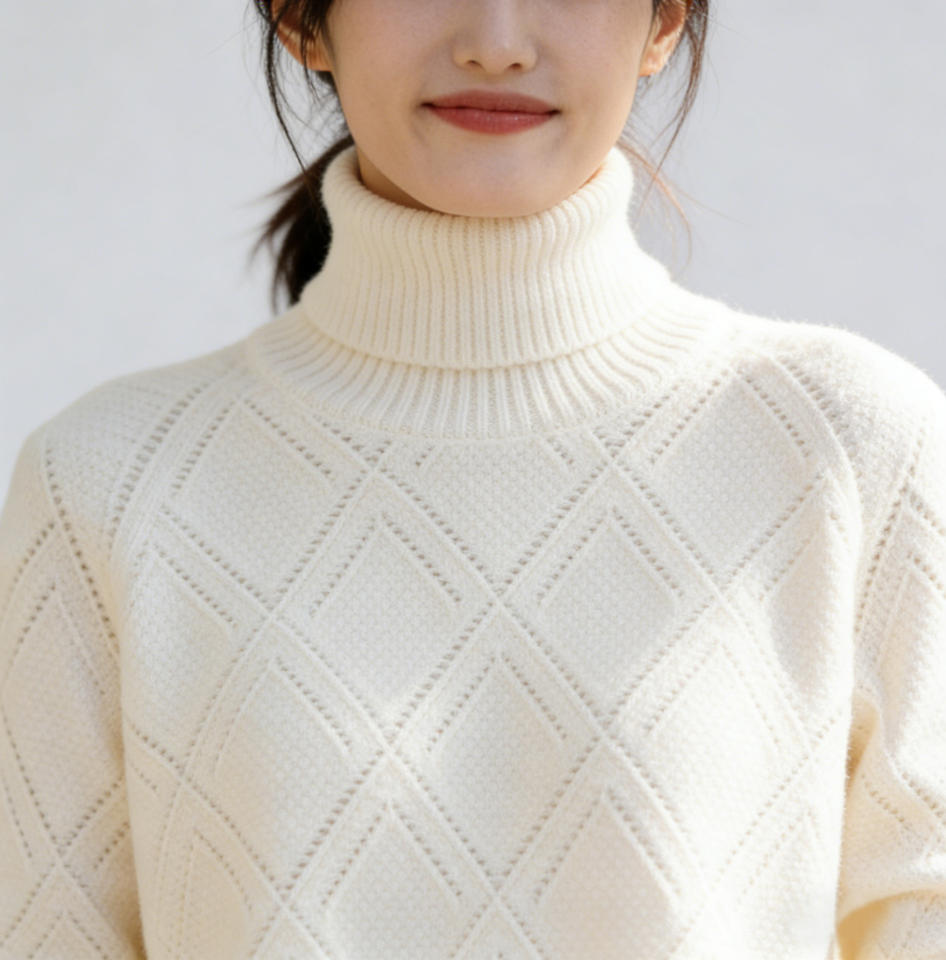 Maglione elegante in Cashmere bianco con motivo a rombo morbido da donna