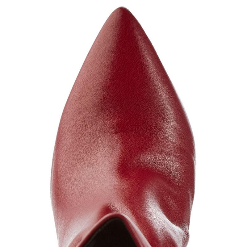 Women Red PU Leather Heteromorphic Heel Ankle Boot Pointed Toe Ladies Elegant 2019 Winter Short Booties