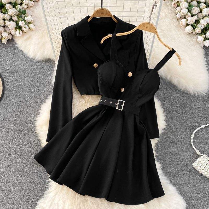 Completo Retrò da Donna con Giacca Corta e Gonna a Fascia Senza Spalline per un Look Ringiovanente