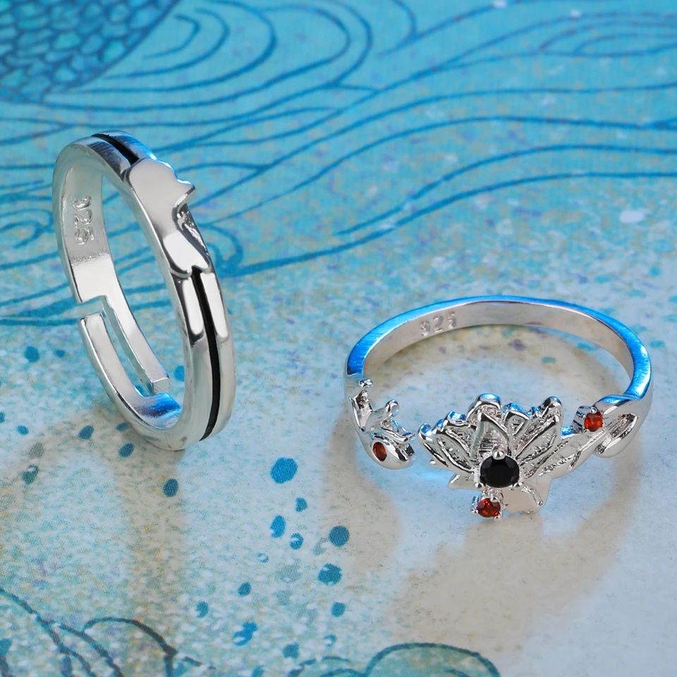 Women Ring Mo Dao Zu Shi Rings Man Lan Wangji Wei Wuxian Fashion Flower Clouds Jewellery Wedding Couples Cute Silver Color Gifts
