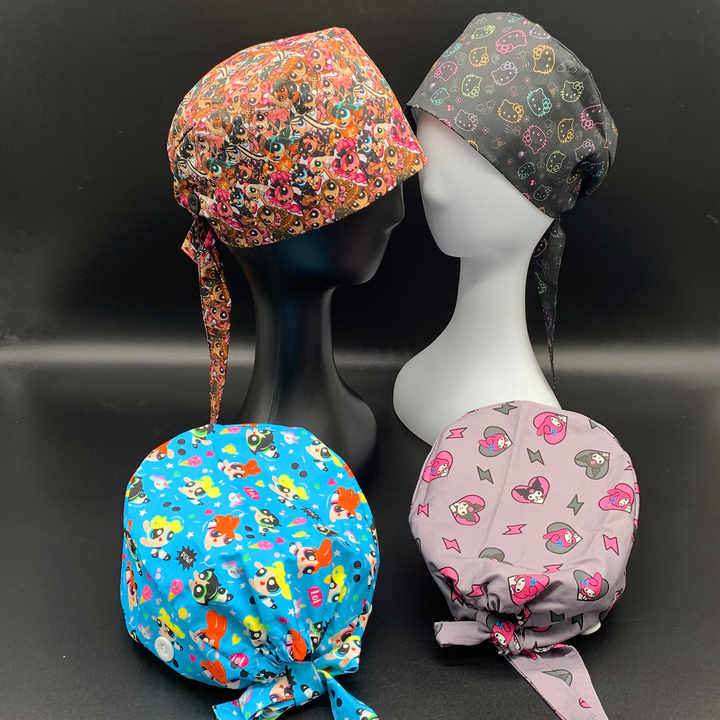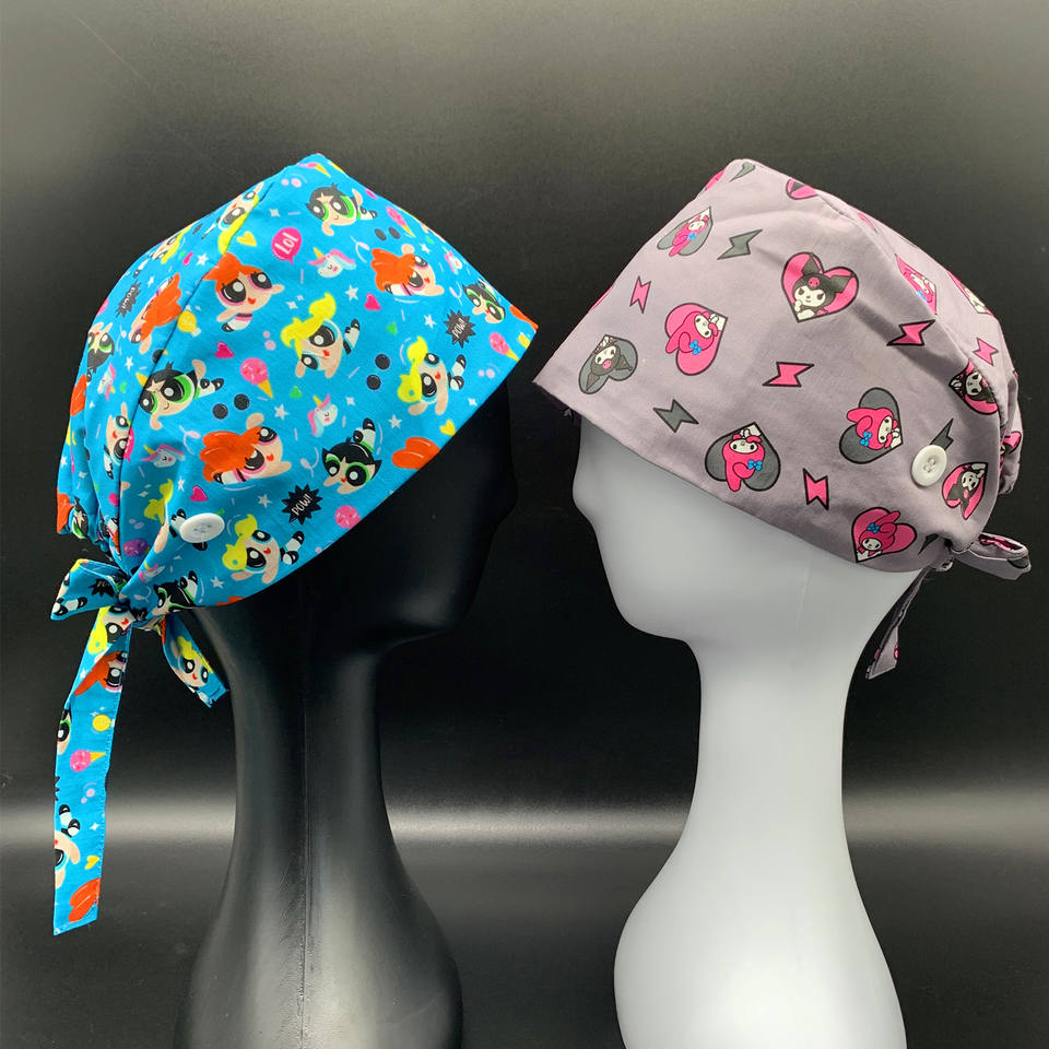 Cuffia da donna tappi chirurgici con bottoni da lavoro con fascia di felpa regolabile cappelli Bouffant Cartoon