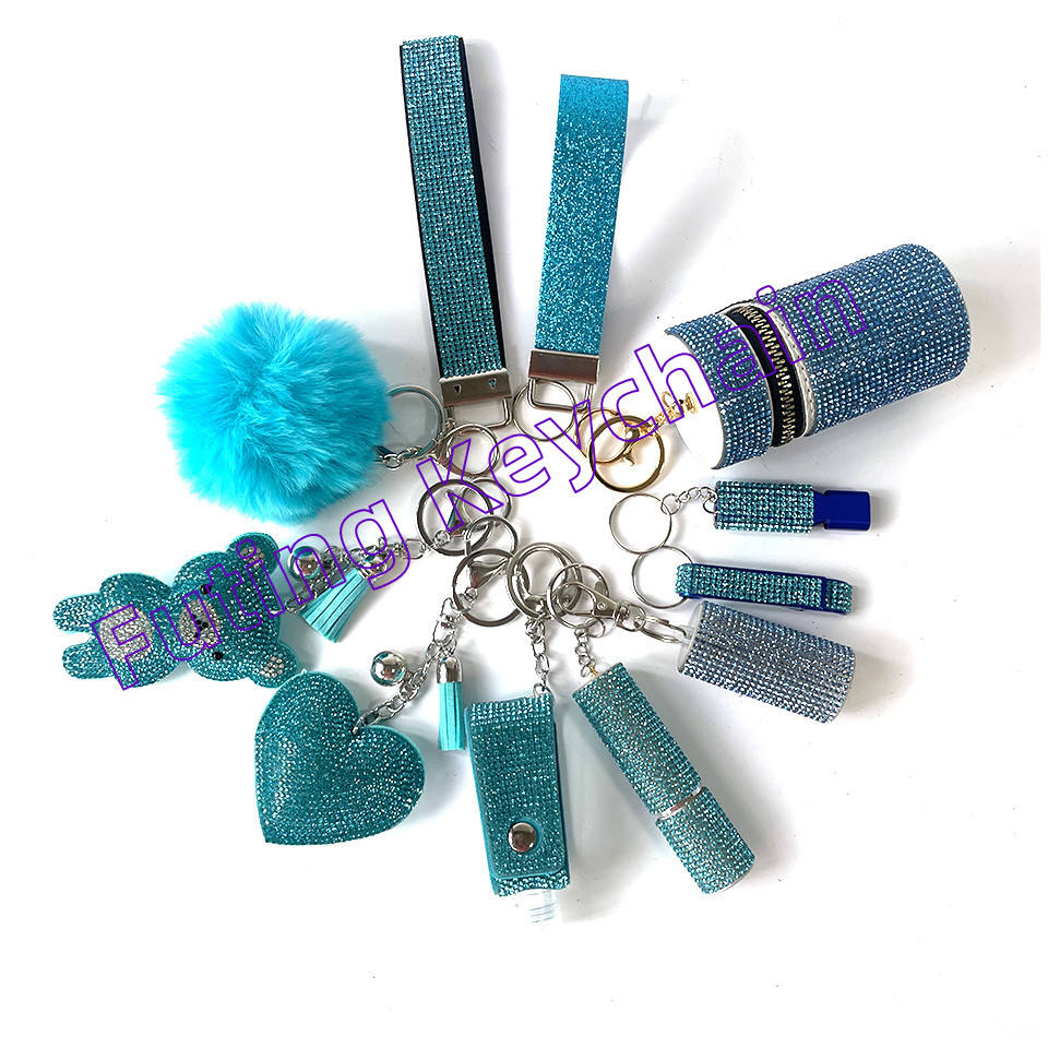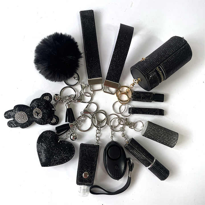 Set Portachiavi per Autodifesa da Donna con Strass Luccicanti, Kit di Strumenti per la Difesa Personale per Ragazze
