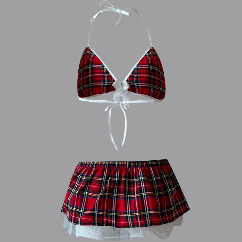 Women Sexy Lingerie Plaid Skirt Uniform Big Breast of Women Sexy Bra Lingerie in Plus Size Girl Lingerie Sets