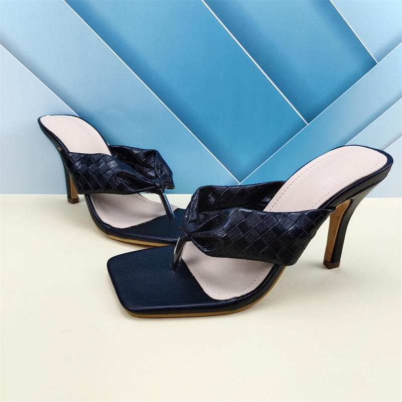 Sandali estivi di qualità con tacco a spillo a punta quadrata Sexy da donna sandali estivi di qualità Slip da esterno su infradito superiore in pelle metallizzata