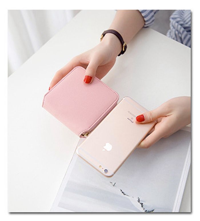Breve portafoglio Femminile Coreano di Stile Della Nappa Piccolo Raccoglitore Semplice Quadrato Della Chiusura Lampo Del Raccoglitore Delle Signore Borsa Della Moneta Unica.