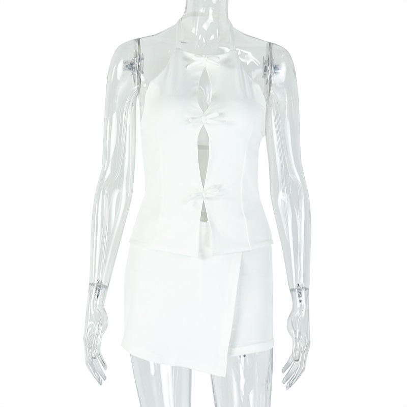 Pantaloncini da donna estivi senza maniche O collo scava Top minigonna pantaloncini Sexy da Club eleganti da donna Set corto in due pezzi