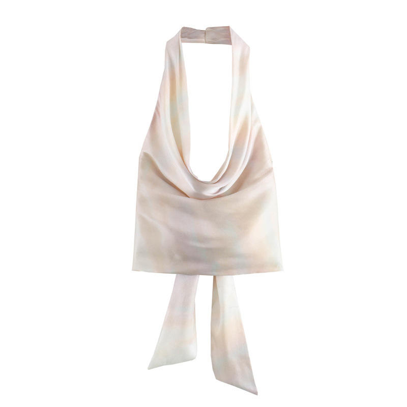 T-shirt Sexy da donna con Texture di seta e tinta con stampa e collo t-shirt estive senza maniche