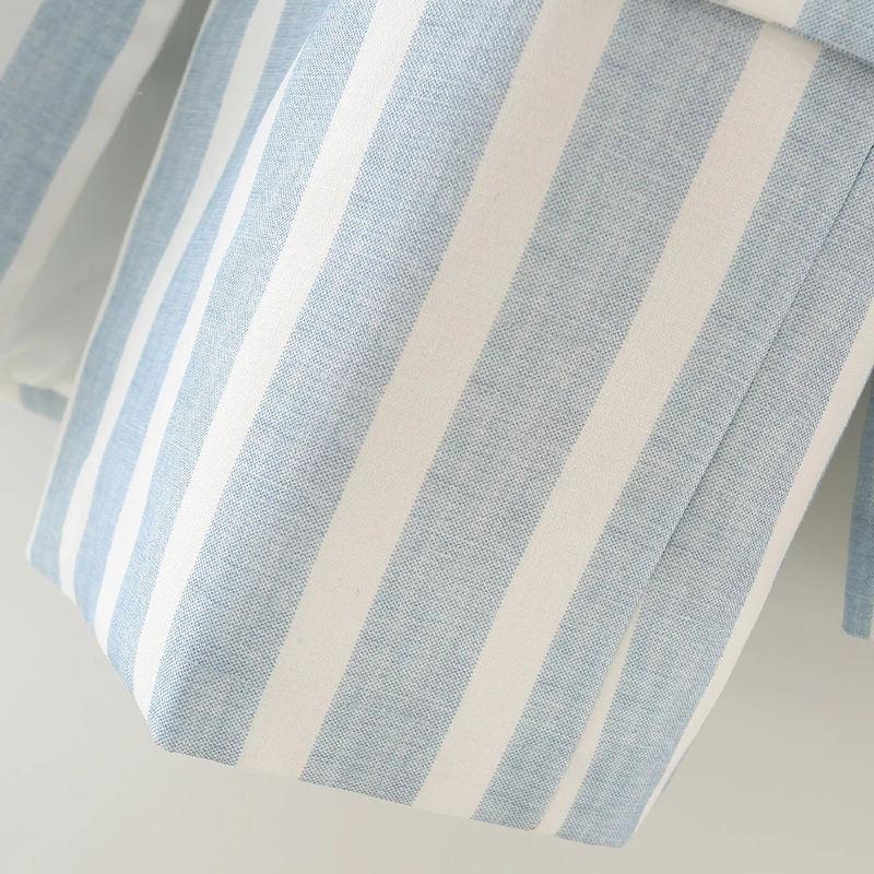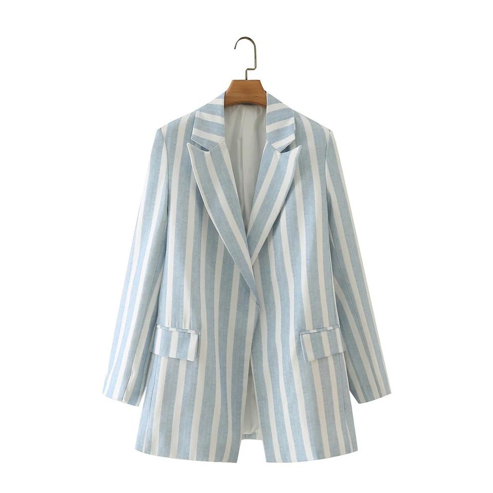 Abito da donna blu chiaro a righe con cappotto monopetto