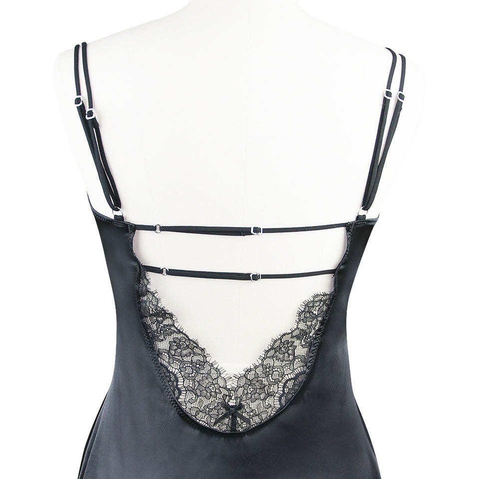Women Slip Dress Goen Double Strap Black White Dress Sleepwear Satin Mini Dress
