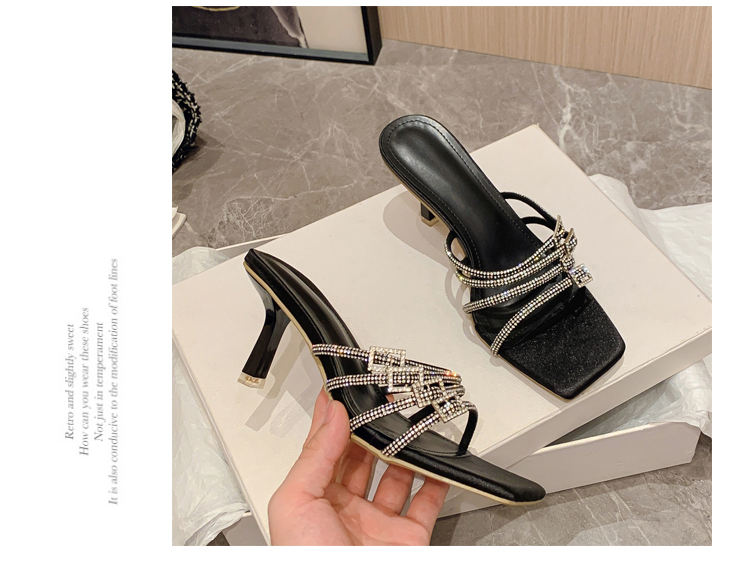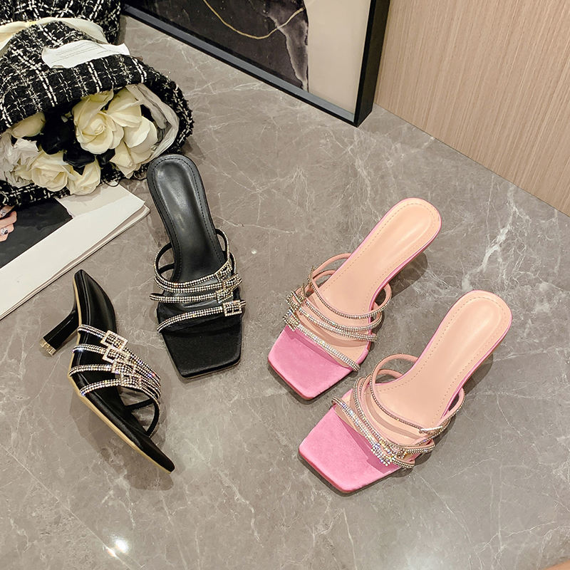 Women Slippers Summer Sexy High Heels Narrow Band Concise Modern Slippers Sandals Square Toe Ladies Party Wedding Shoes 2023