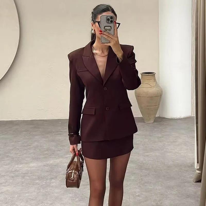 Completi da donna Set gonna Blazer due pezzi marrone autunno giacca donna Set gonna gonna