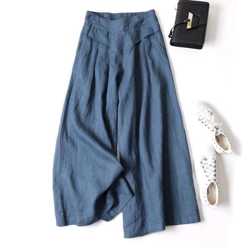 Pantaloni Larghi Estivi da Donna in Cotone, a Vita Elastica, Tinta Unita, Casual, Lunghezza al Polpaccio, per Primavera/Estate - Vendita all'Ingrosso