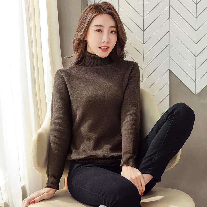 Women Turtleneck Thick Sweater Autumn Winter Long Sleeve Knitted Pullover Top Female Solid Slim Fleece Sweaters