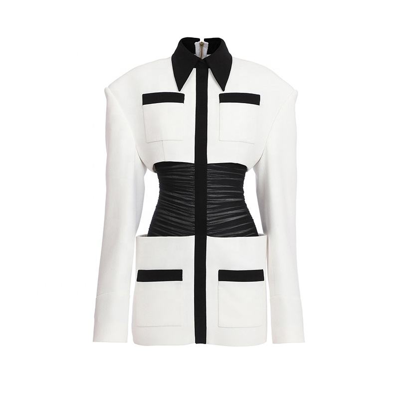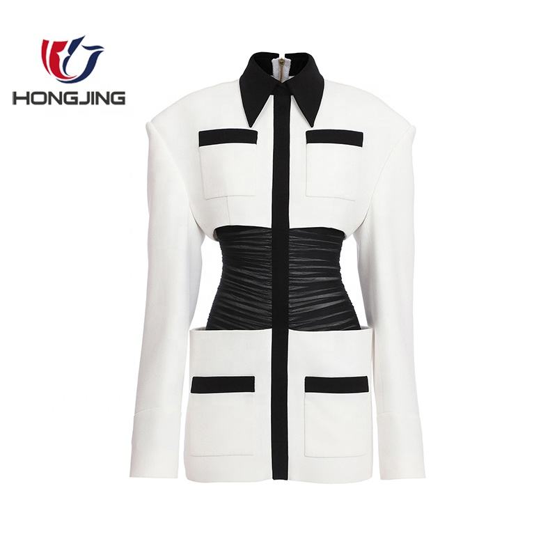 Donne Two-Tone Increspato Crepe Giacca di Taglio per una vestibilità slim blazer manica lunga orlo dritto cappotto da sera del partito camicia della parte superiore di cerimonia nuziale