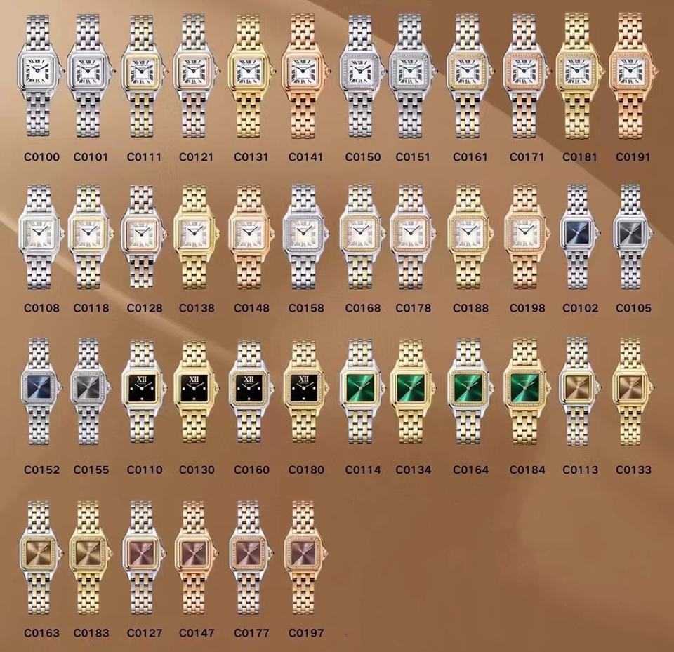 Women Vintage Panther Square Watch Stainless Steel Gold Leopard Quartz Wristwatch Roman Numerals Pathere Clock Animal 22mm 27mm