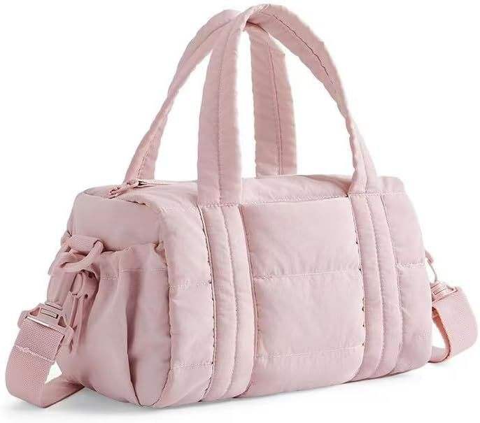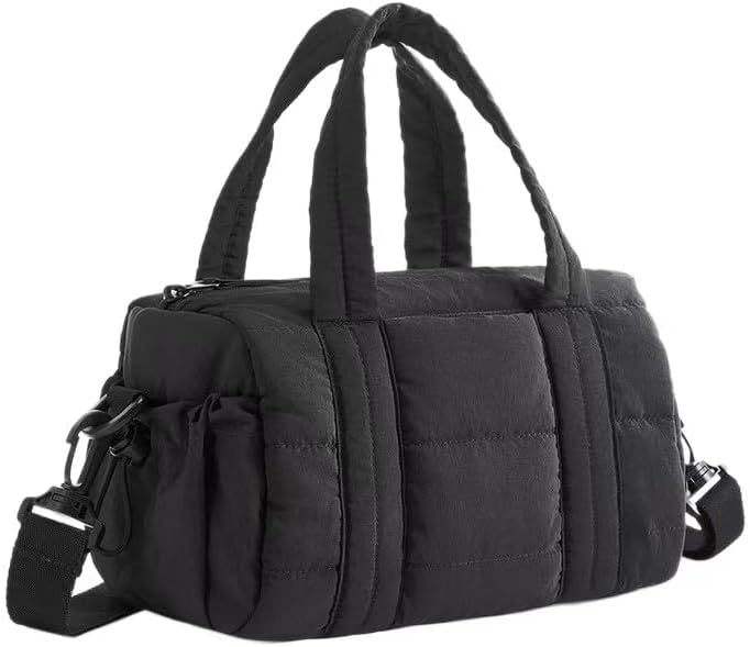 Women Waterproof Puffer Quilted Gym Bag Soft Puffy Shoulder Tote Large Capacity Compact Travel Crossbody Bag