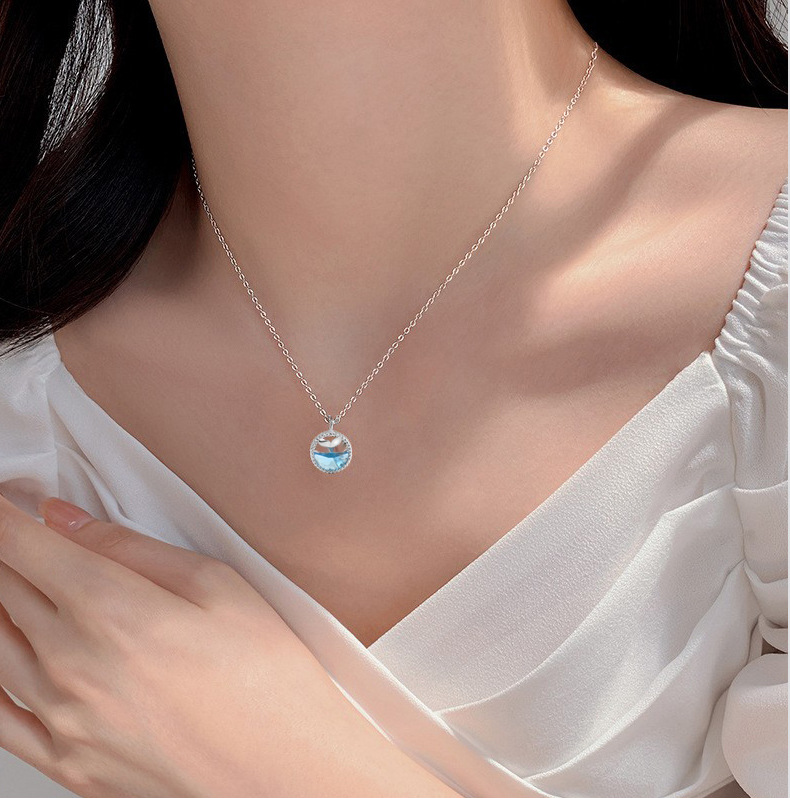 Women Whale Tail Charm Hypoallergenic 925 Sterling Silver Anchor Chain Stranded for Love 4A+ Zircon Blue Ocean Pendant Necklace
