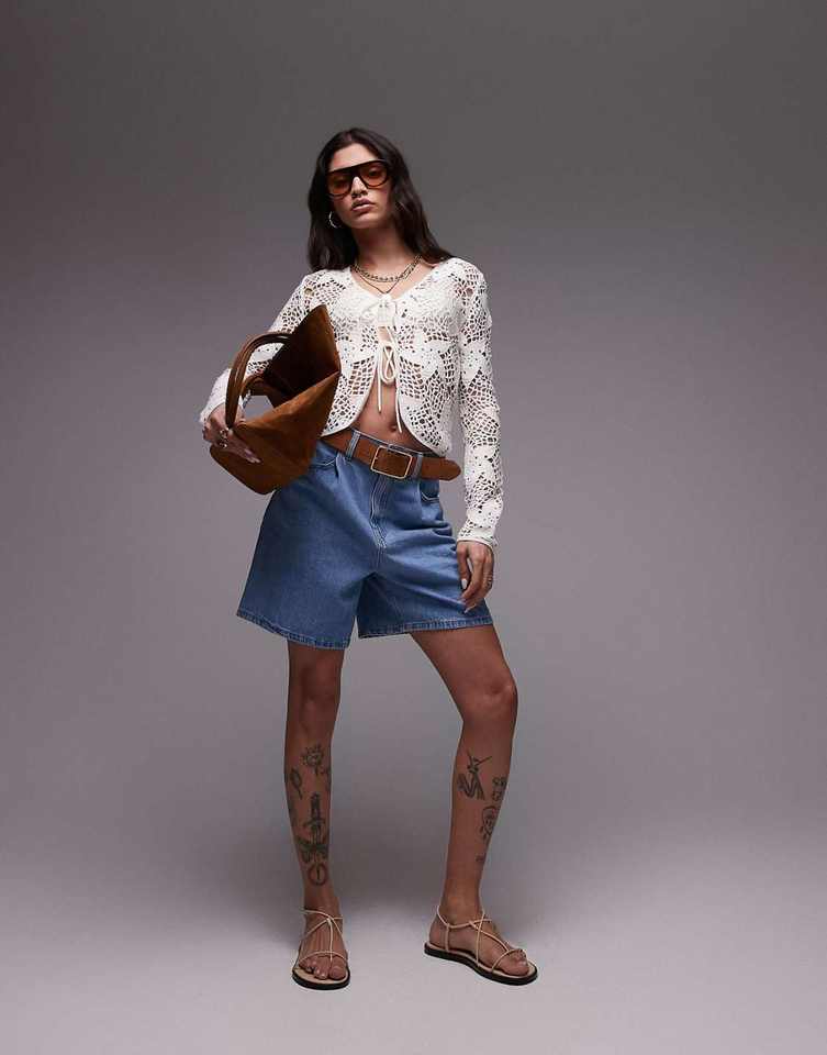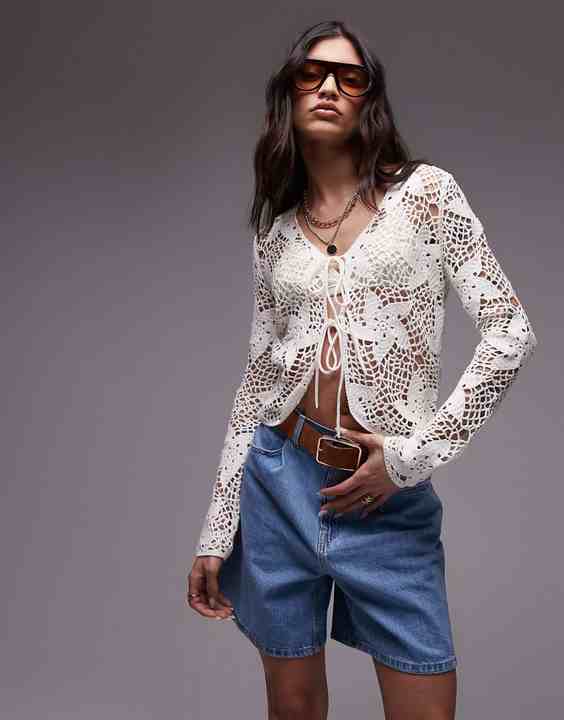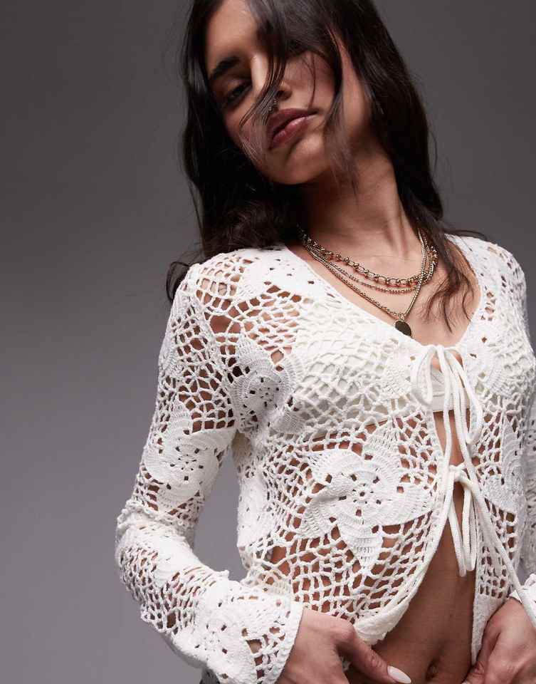 Women White Cotton Crochet Sweater Crochet Style Clothes Bohemian Beach Cover-Up Cardigan