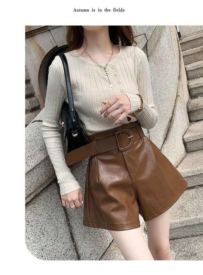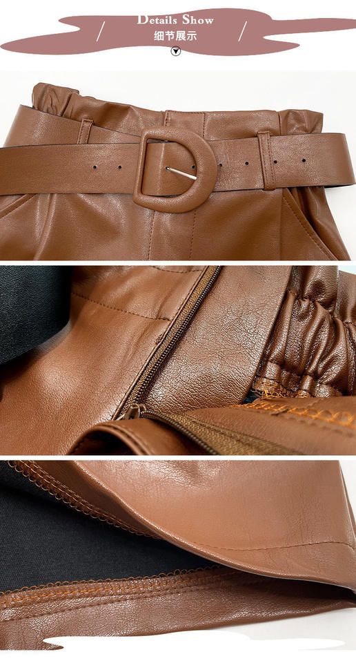Women _ Chic Fashion Faux Leather Shorts Vintage High Waist Female Shorts All-Match Solid Color Loose Casual Shorts