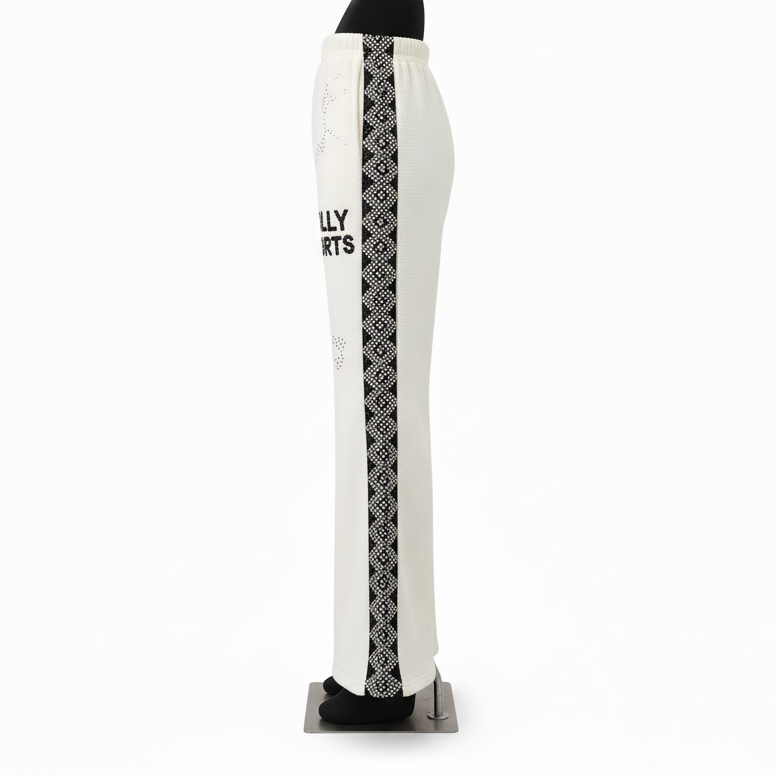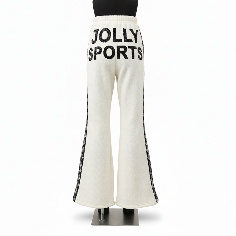Women flare pant premium 280 gsm polyester stretch knit fabric cream color contrast side panels heat transfer logo Women's Pant