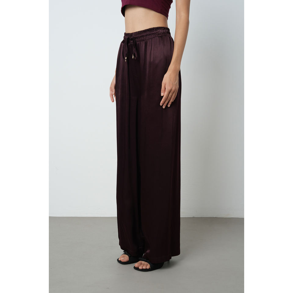 Women's 100% Viscose Burgundy Wide Leg Trousers Elastic Waist-Plain Design