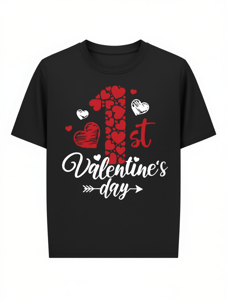 Women's 1st Valentine's Day T-Shirt Short Sleeves Round Neck Digital Print Casual Spring Summer Cotton Jersey Regular Fit