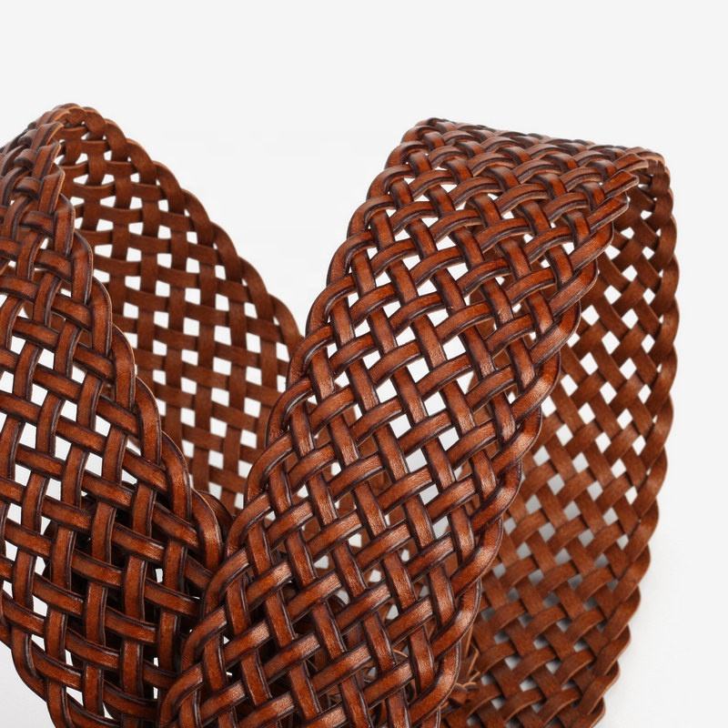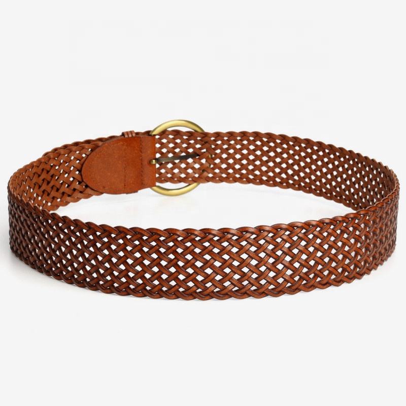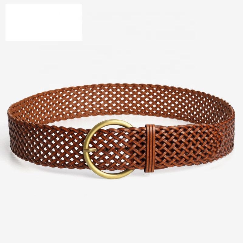 Cintura in pelle rotonda intrecciata larga 2 pollici da donna
