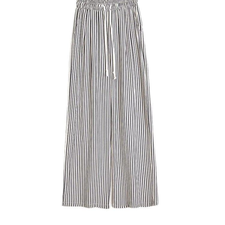 2025 donna primavera autunno pantaloni larghi a righe bianche nere a vita alta pantaloni larghi a gamba dritta Casual in cotone vita elastica