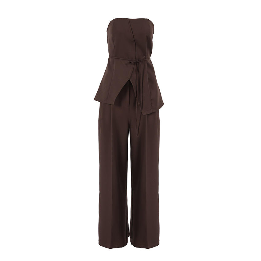 Women's 2025 Summer Fashion Sexy Backless Strap Sleeveless Lace Solid Short Loose Wide Legs Trousers Suit Women's Trousers Suit