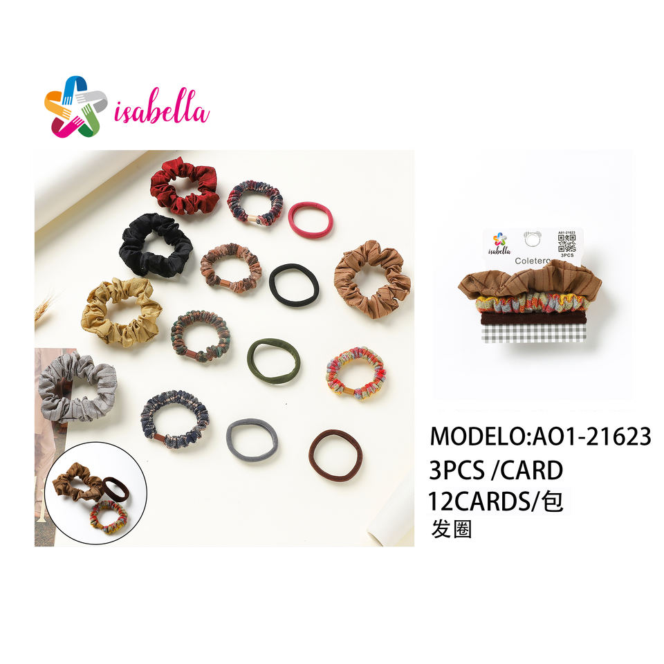 Women's Fashionable Trendy 3-Piece Hair Tie Set Elegant Decorative Colorful Elastic Fabric Hairband Accessory Cute Stylish