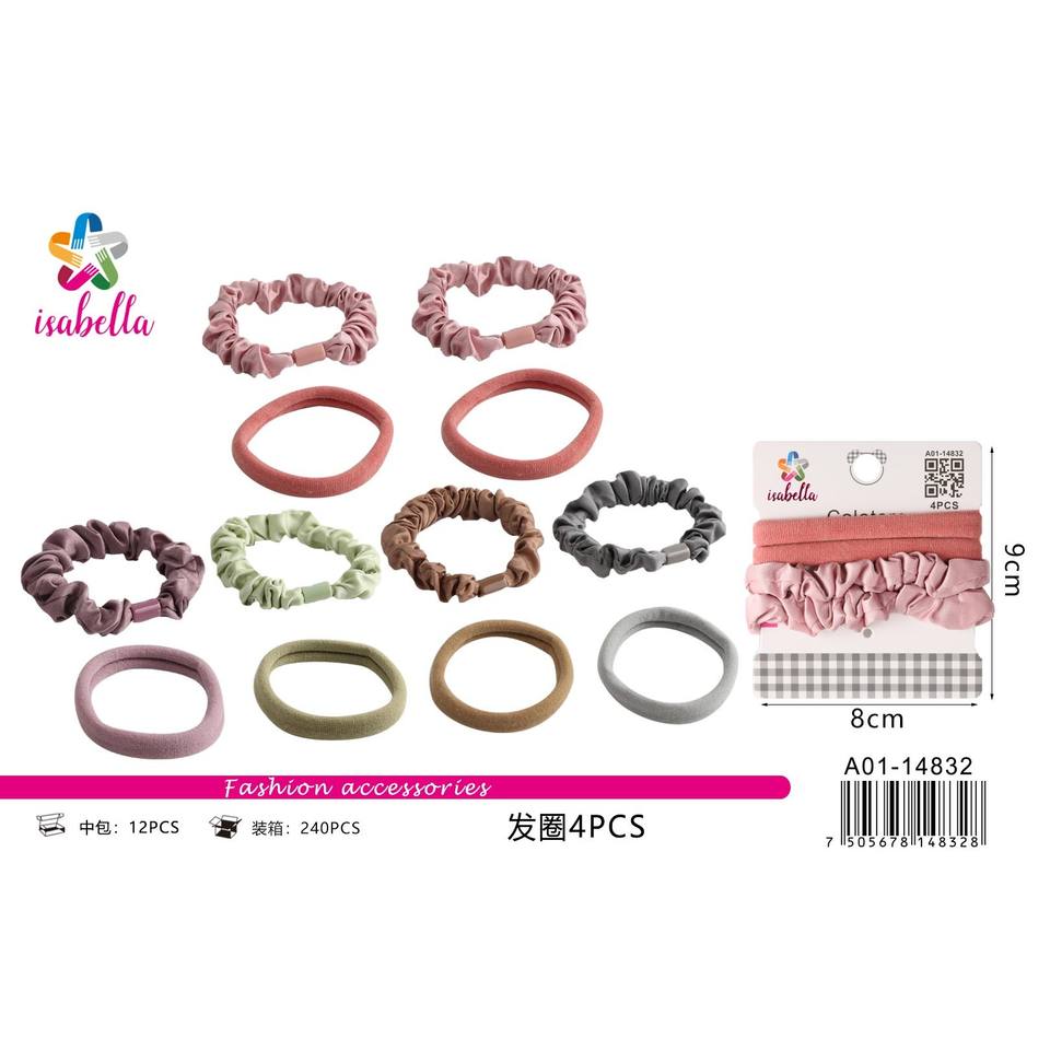 Women's 4-Piece Hair Tie Set A01-14832 Fashionable & Elegant Hairbands Stylish Decorative Colorful Elastic Fabric Accessory