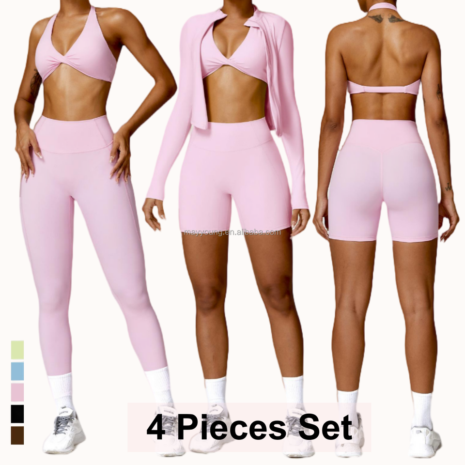 Women's 4-Piece Sportswear Set Slim Beauty Back Halter Bra Short Yoga Outfit Outdoor Running Gym Fitness Winter