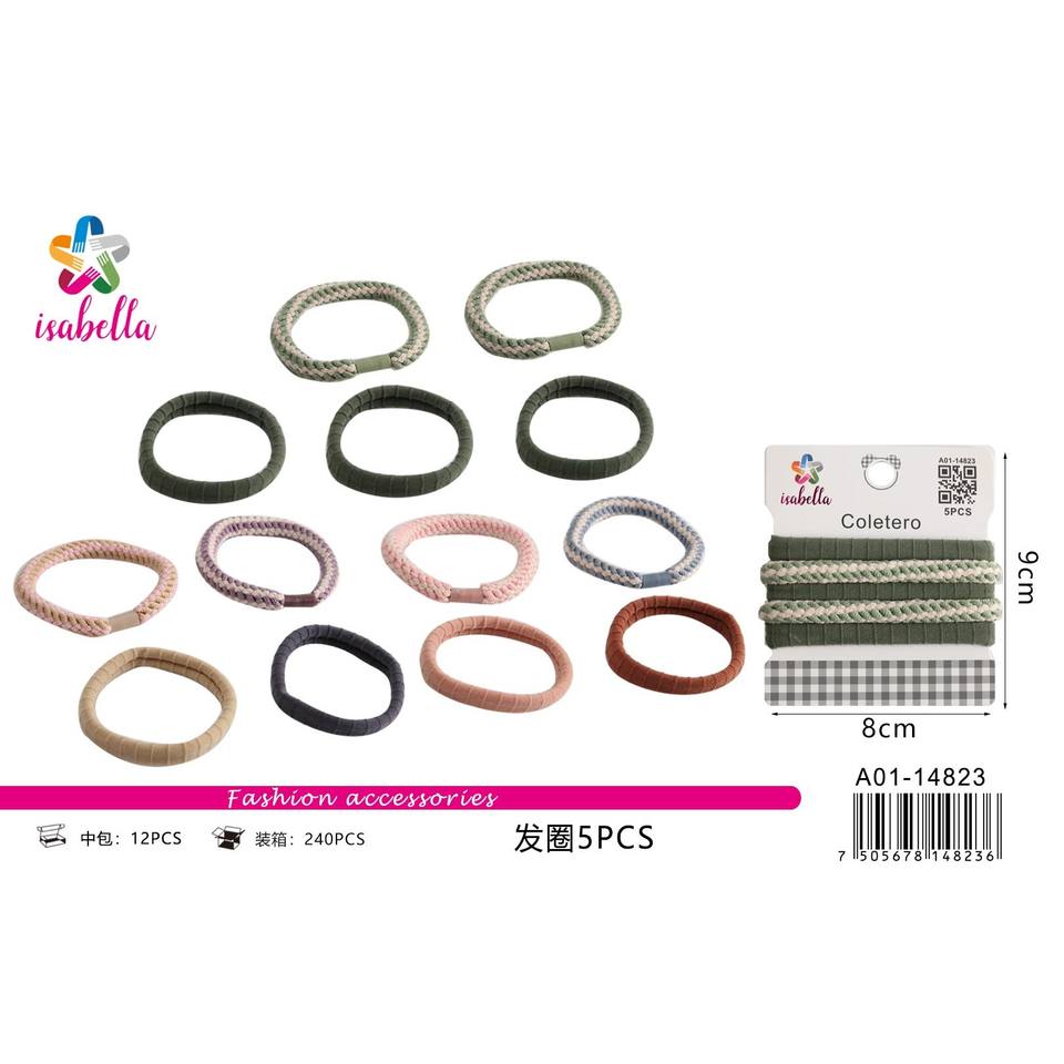 Women's 5-Piece Hair Tie Set A01-14823 Fashionable & Elegant Hairbands Stylish Decorative Colorful Elastic Fabric Accessory