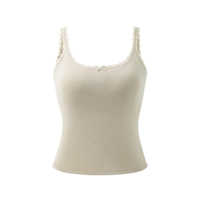 Women's 7A Antibacterial Petal White Knitted Cotton-Feel Intimates Beautiful Back Sling Comfortable Breast Pad Lace Camisole