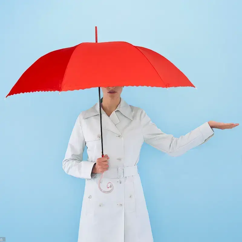 Ombrello antivento automatico a 8 costole da donna con elegante cupola a palloncino e manico a forma di cuore in rosso nero blu