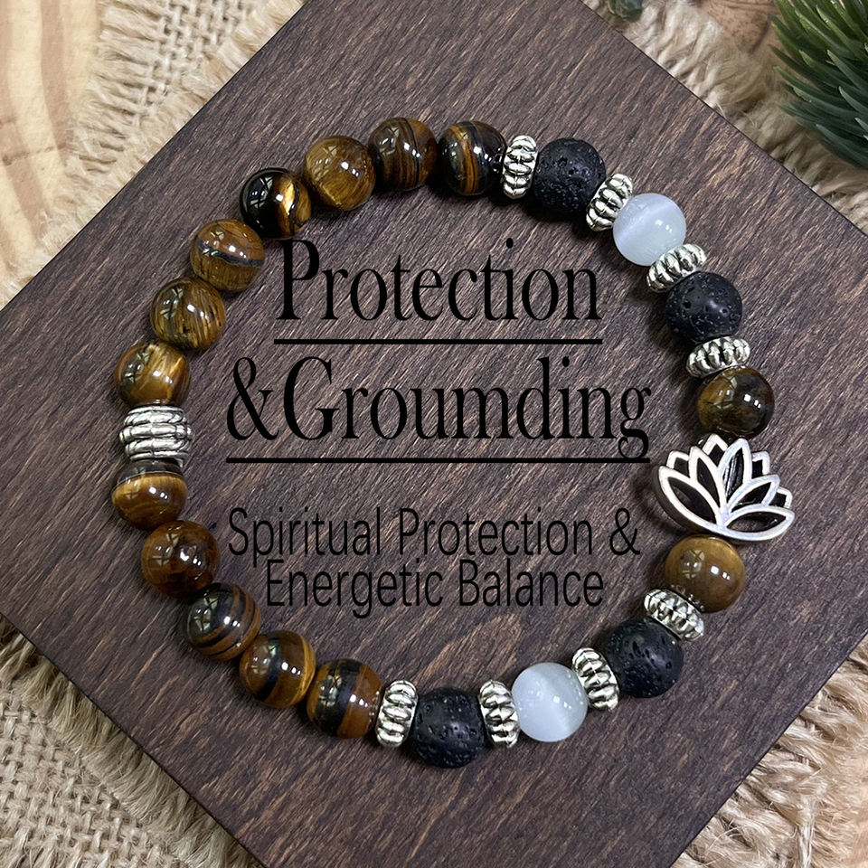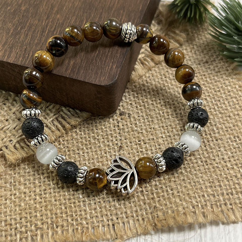 Ciondolo da donna con fiore di loto in argento regolabile con perline di occhio di tigre per braccialetto spirituale Yoga preghiera gioielli di guarigione naturale alla moda