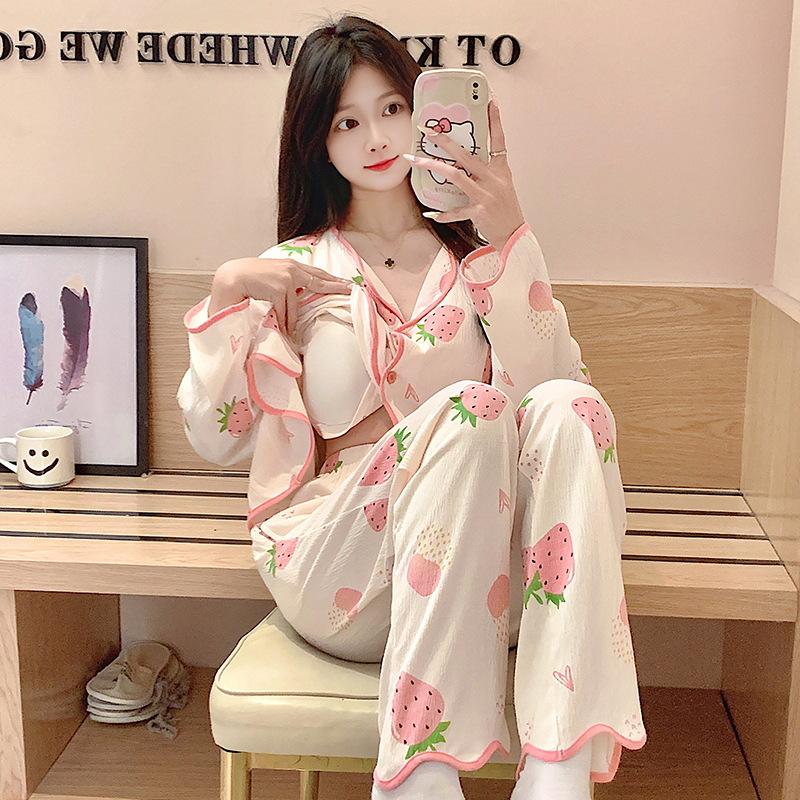 Pigiama Intero da Donna in Cotone a Maniche Lunghe con Apertura a Cardigan e Stampa Gatto Cartone Animato, Stile Casual Traspirante Taglia XS per l'Autunno