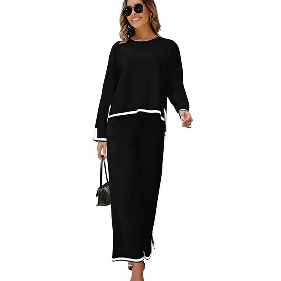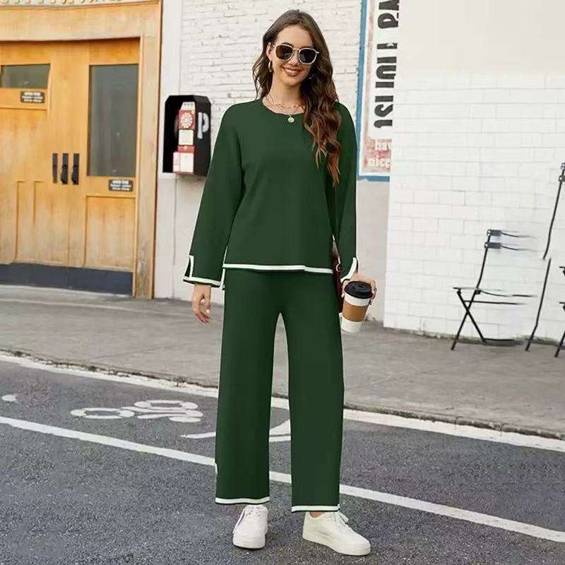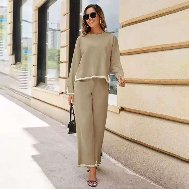 Completo Casual da Donna in Maglia Antirughe con Collo a O, Lunghezza alla Caviglia, Vita Alta e Vestibilità Ampia per l'Autunno