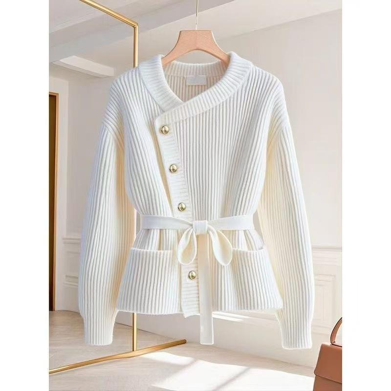 Cardigan in maglia tinta unita asimmetrico con cintura asimmetrica e maglione con Design a bottone alla moda