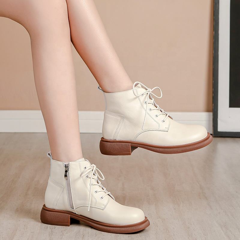 Stivaletti in pelle marrone stile autunno britannico con pizzo con fondo morbido stivali Casual con chiusura a Zip grandi stivali invernali