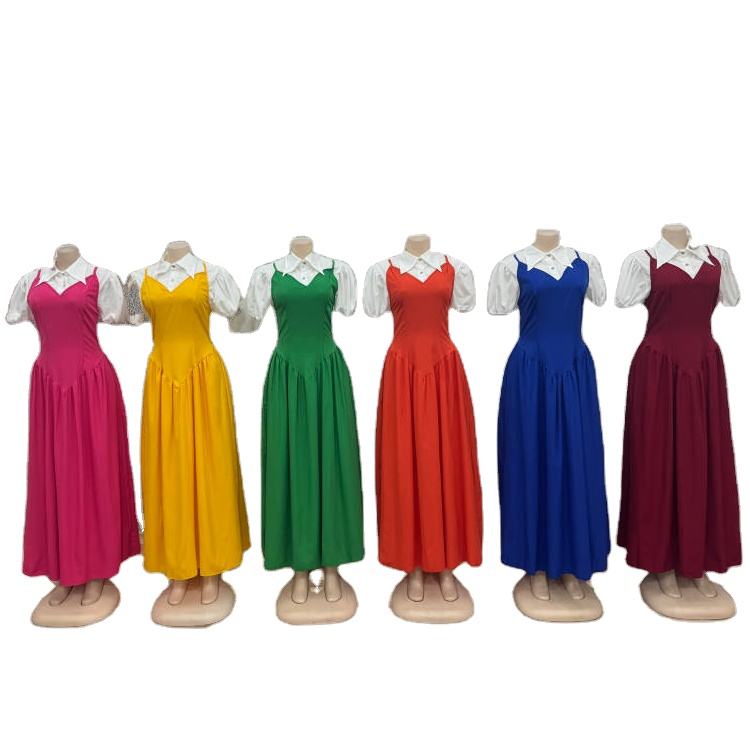 Women's Autumn Elegant Elegant Puff Sleeve Shirt Collar High Waist Slimming Stitching Fashion New Dress