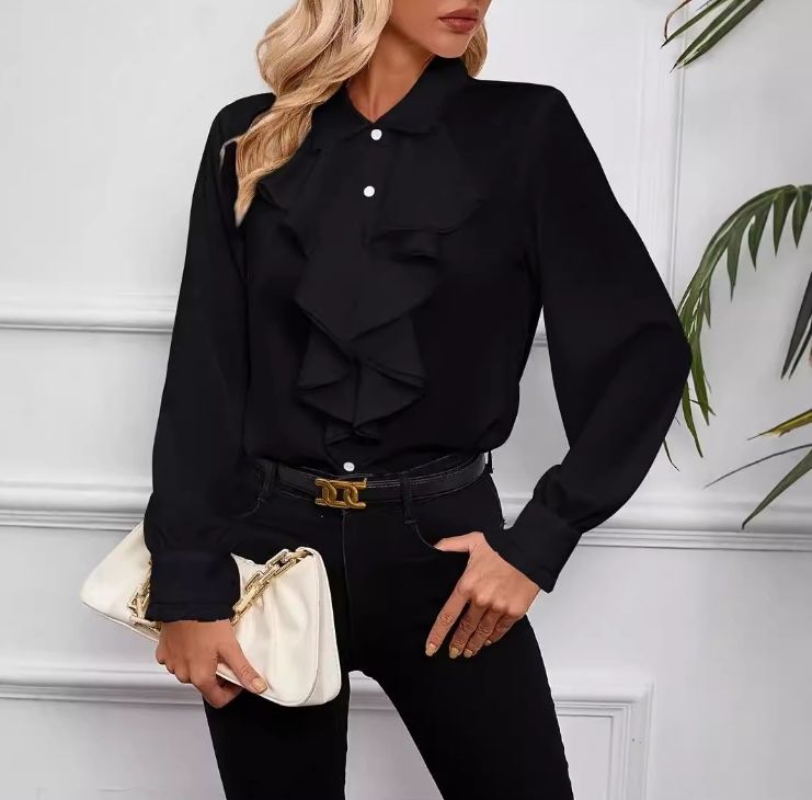 Blusa donna autunnale con volant a strati in poliestere, comoda e traspirante, taglie S-2XL, 5 colori, confezione da 2 pezzi
