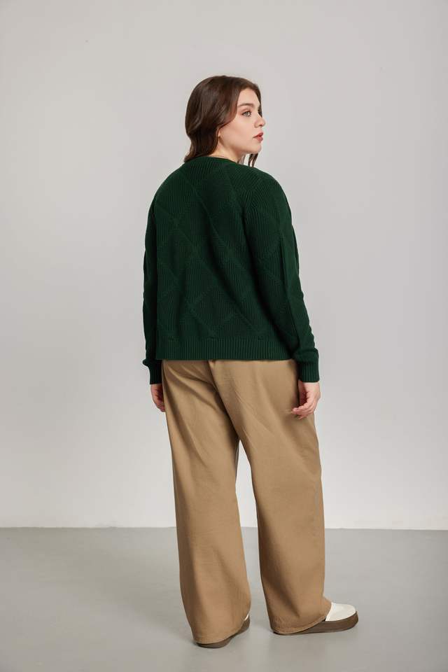Women's Autumn Winter Easy-Wear Green V-neck Standard Cardigan Premium Gold Button Details Vintage Style 100% Cotton Sweater