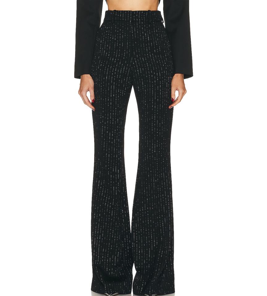 Women's Autumn and Winter Thick Knit Pants Side Slip Pockets Will Fabric With Metallic Threading Throughout Trousers