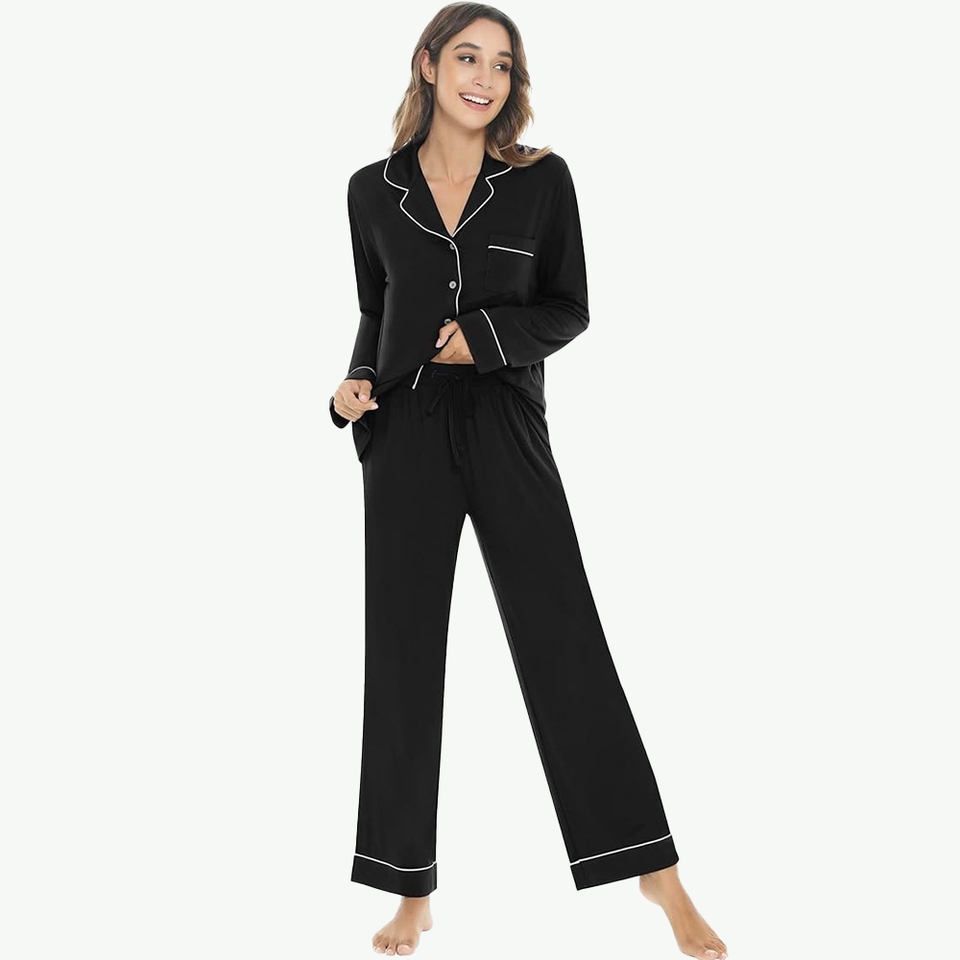 Product Name:Solid Contrast Piping Bamboo Customized PJ Set