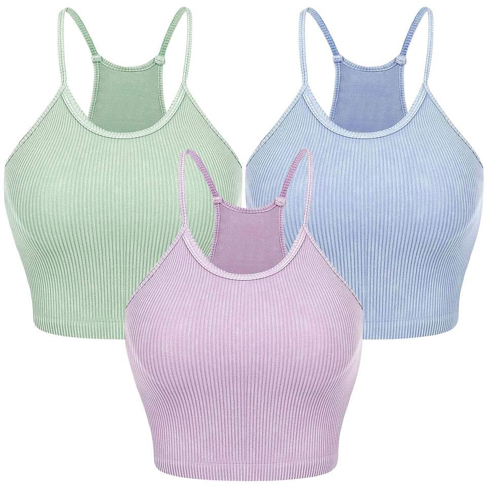 Top Corto Basic da Donna, Confezione da 3, in Maglia a Costine Senza Maniche con Scollo, Disponibile in 9 Colori, Lavabile in Lavatrice, Taglie S-XL per l'Estate
