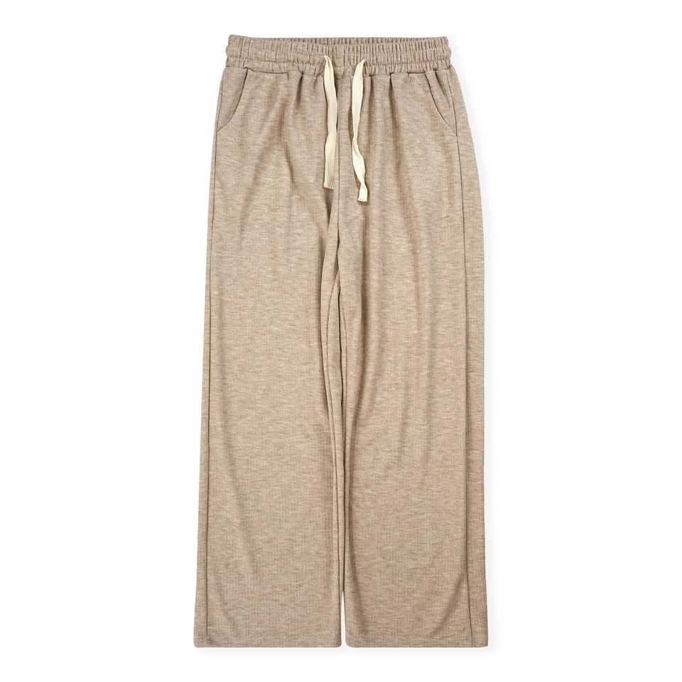 Women's Beige Breathable Wide-Leg Knit Pants High-Waisted Elastic Waist Classic Casual Flare Cargo Design Wrinkled Technique RND