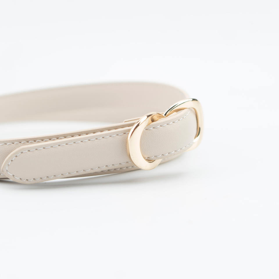 Women's Beige Thin Leather Belt with Double Gold Infinity Buckle