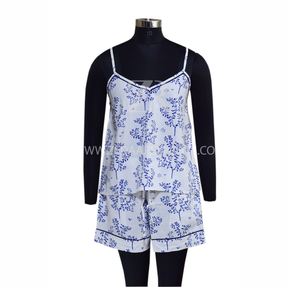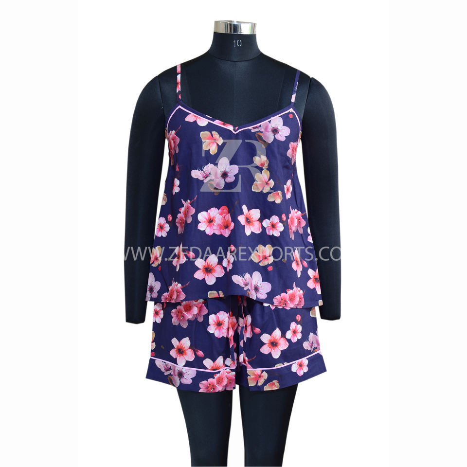 Women's Black Cotton Floral Printed Top Shorts Sets Casual Camisole Nightwear for Summer Low MOQ Custom Order