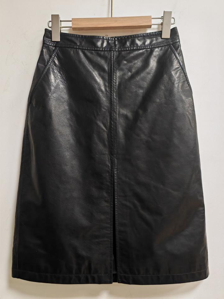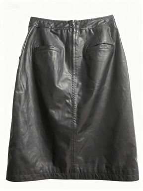 Women's Black Faux Leather A-Line Midi Skirt - Lightweight Spring Staple